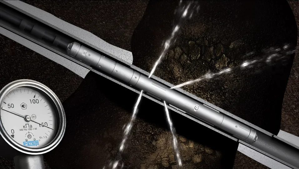 Tunnel perforation is a conservative way of perforation that creates injectivity between the well and formation by cutting long slots or tunnels in the well casing with round cylinders. The perforator is equipped with jet nozzles that erode cement stone, forming caverns in the wellbore.