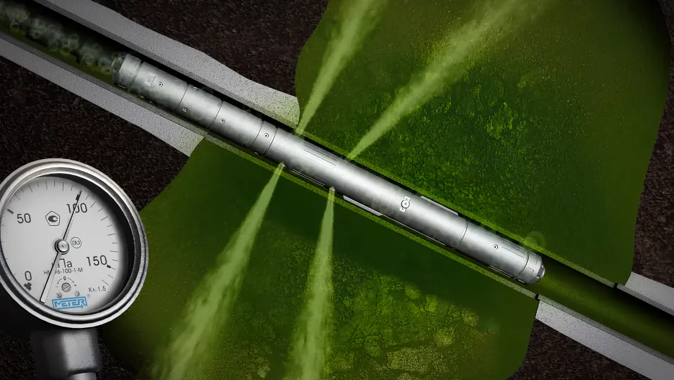 Tunnel perforation is a conservative way of perforation that creates injectivity between the well and formation by cutting long slots or tunnels in the well casing with round cylinders. The perforator is equipped with jet nozzles that erode cement stone, forming caverns in the wellbore.